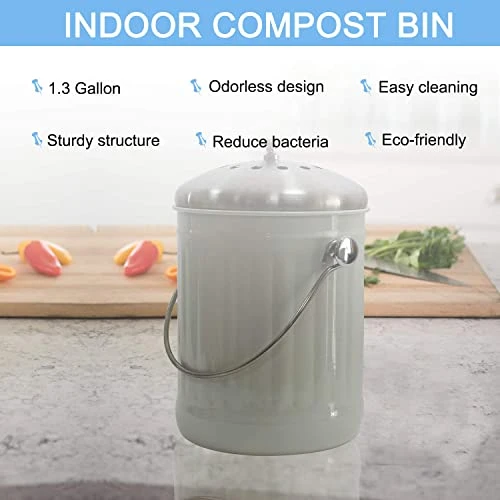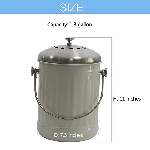 - ♥ Sturdy construction—-The compost bin is made of durable and high-grade metal so it won’t be scratched or cracked. It is molded in one piece and seamless, so it can prevent leakage and rust. This kitchen compost bin will not release harmful chemicals so you can compost with confidence.