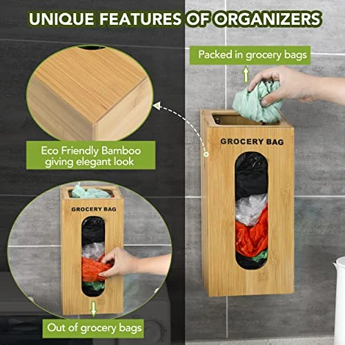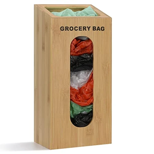 - Sturdy & Elegant – Made of naturally durable bamboo, this plastic bag holder for cabinet/countertop is built to last! Its smooth, light wooden finish goes well with the aesthetic of your living space.