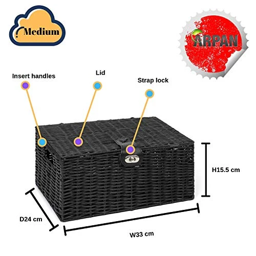 ARPAN Medium Resin Woven Storage Basket Box With Lid & Lock – Black