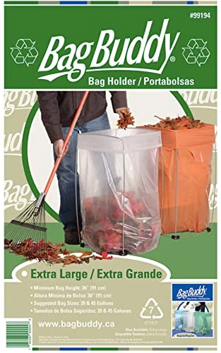 - Makes leaf and trash collection a breeze! The 30″ Bag Buddy stand holds 39 – 45 gallon plastic and paper garbage or leaf bags open – no more frustrating or messy clean-up!