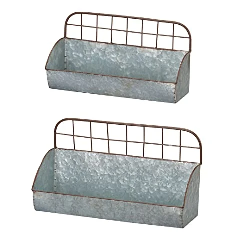 Barnyard Designs Galvanized Metal Rustic Farmhouse Wall Hanging Storage Caddy Holder Organizers, Tin Wall Shelves, Large: 16.5” X 6” X 9.5”, Small: 15.25” X 5” X 8”, Set Of 2