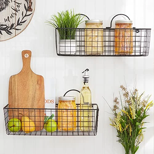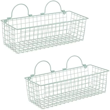 - SET OF 2 BASKETS: Includes two medium wire wall baskets each measuring 17.7×6.7×5.1″