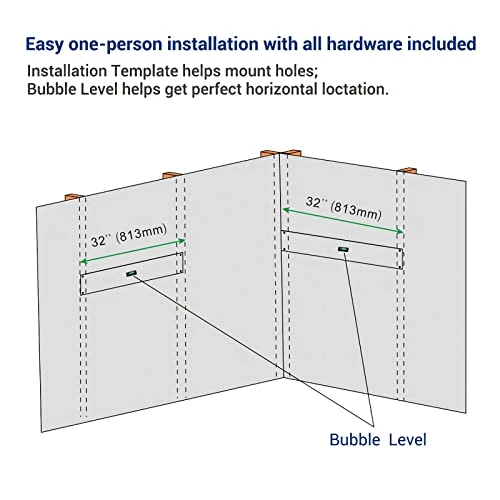 - 4. EASY TO INSTALL: Easy one-person installation with all hardware included. Installation Template helps mount holes. (Assembly needed DIY project) Bubble Level helps get perfect horizontal loctation.