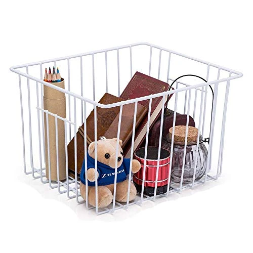 - IDEAL BASKET-Perfect for homes, apartments, condos, dorm rooms, RVs and campers, This bin keeps clean and save room under control by storing all of your essentials – foods, hats, scarves, video games, laundry needs, craft supplies and more.This metal wire basket is the perfect solution for organizing a multitude of items, Use in kitchen, refrigerator, bathroom, bedroom, closet, laundry room, utility room, garage, hobby and craft room, home office, mudroom and entryways.
