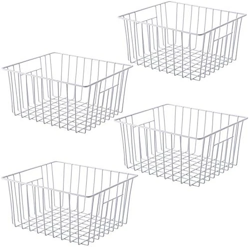 - EASY TO USE & CLEAN-Wire storage basket with built-in handles for portability.Handles make these bins easy to remove from shelves.Open design lets you easily view everything in the basket. Wipe clean with a soft damp cloth.