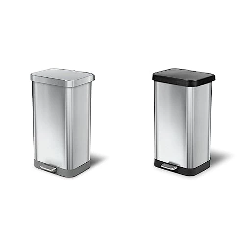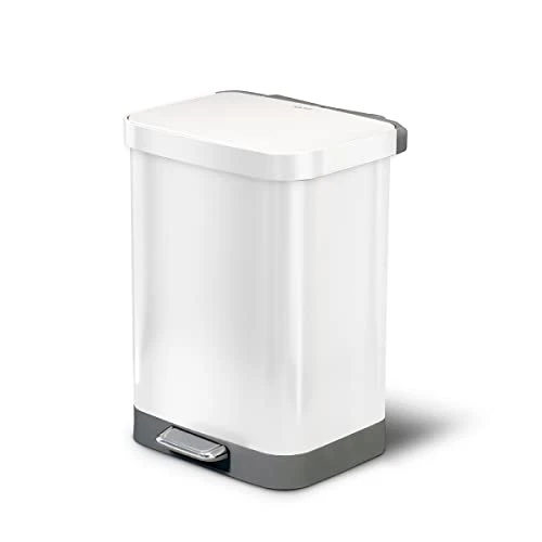 - HANDS FREE STEP TRASH CAN WITH SOFT CLOSE LID – For hands-free use, this kitchen trash can is built with an easy step foot pedal. The soft-close lid is specially designed with silent operation for a quiet and controlled open and close every time.