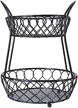 - Style and functional: Handsome Loop and Lattice design helps this tiered basket look great while also storing and displaying fruits, breads, and more