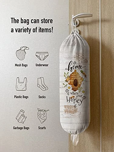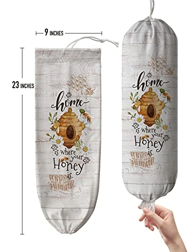 - 🎁 Bee Kitchen Decor &Perfect Gift -This home is where your honey is quotes theme grocery bags dispenser with cute design fit any fashionable indoor style.A great decor item for your home farmhouse kitchen,also suitable for making housewarming gifts,hostess gifts,birthday Mother’s Day Christmas Thanksgiving gifts for mom grandma wife aunt coworker neighbor or any friends.