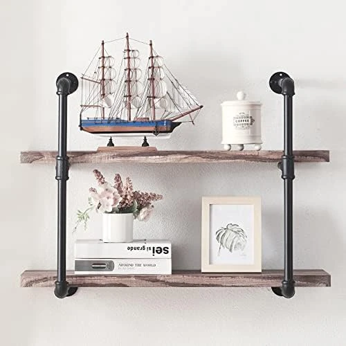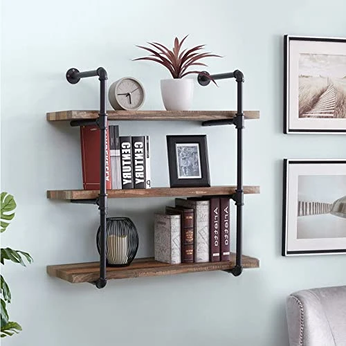 - Constructed with Durable MDF(not solid wood)and Sturdy Iron Pipe that Bears High Weight Capacity. Each Shelf could Hold 50 lbs.