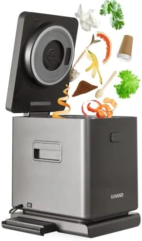 - 🌎Intelligent Design: IUHAND adopts intelligent touch screen control with voice broadcast function. Start the cycle with one click, and the voice function will help you monitor the progress. Smart waste kitchen composter shell is made of super strong polypropylene with painted exterior. The 3L Teflon inner bucket can be easily removed for easy collection of food waste.