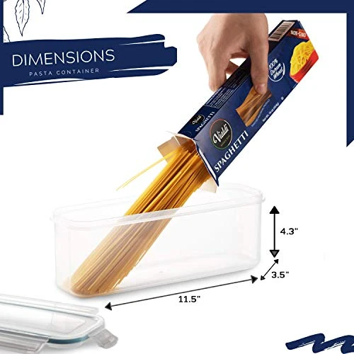 - Perfect Size for Pasta: This pasta organizer for pantry has a four-side locking lid and each container measures 11.5″ x 3.5″ x 4.3″ which can fit just about any size or type of noodle! These air tight sealable containers won the “Red Dot Design Award” in 2004.