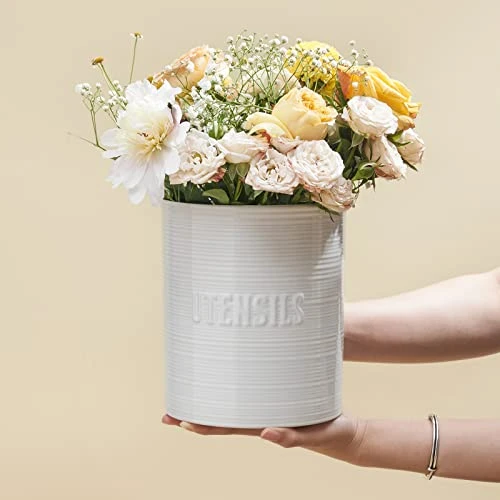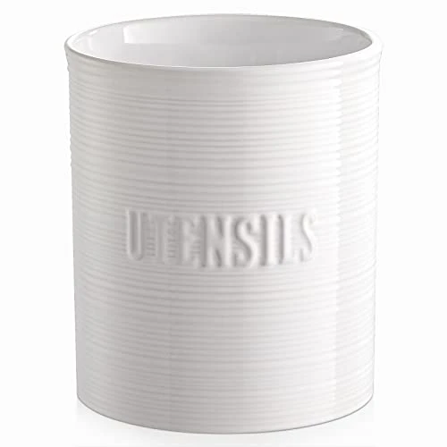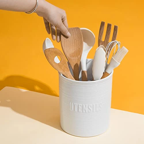 - Easy to clean: The texture of porcelain utensil crock is smooth and anti-scratch.You can be kept shiny by scrubbing with a damp towel. The embossed lettering will never come off.