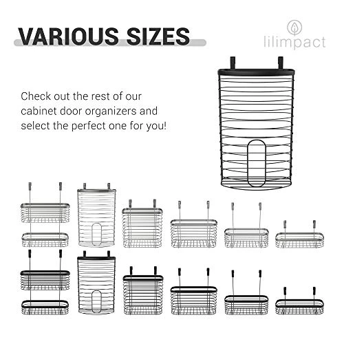 At Lilimpact, strive to make your kitchen a pleasant, clutter-free environment with plenty of room for maneuvering. Keep all your plastic bags in one place, out of sight, but easy to reach. With a secure storage and dispenser function, your kitchen will instantly become more organized. The Lilimpact Wall Mount Plastic Bag Holder is a great way to reuse old plastic bags that would otherwise be thrown out. Made of robust and durable metal, the Holder is slim and sleek. It can easily be mounted over a door, in the pantry or under the kitchen sink. Just push your old bags into the top and then pull them out one-by-one from the wide dispensing area on the front. Simple and easy to use, the Grid Storage Basket will save you precious time, and you will help in reducing plastic waste! Lilimpacts cabinet mount is Ideal for organizing your kitchen. Easily arrange your plastic bags in one place, and enjoy your clean and organized space. Rearrange your under-sink and kitchen cabinets from crowded and cluttered to neat and organized. Lilimpact’s over door cabinet holder provides plenty of storage room and easy installation. Mount the organizer on any wall or kitchen cabinet. You can hang the cabinet holders on the inside or outside of the cabinet doors; the choice is yours. Specifications: Material: Metal Basket Dimensions Length: 8” , Height: 15”, Width: 4” Color: Black