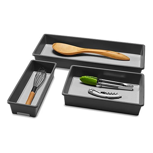 - EFFICIENT DESIGN: Simple 1-compartment design of the assorted size bins makes it easy to create your own personalized organizational system to fit in any drawer throughout your home