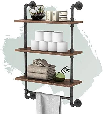- 【Bathroom Shelves over toilet】Industrial Floating shelves with towel bar are fit for bathroom shelves, towel racks, office bookshelf, kitchen pantry, garage storage shelves, farmhouse storage, basement storage, Tissue shelves, spice racks or wherever you want to put it.