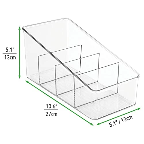 - COMPACT DESIGN: The compact design of this storage container easily fits into small or crowded kitchen cabinet and pantry shelves; The sloped design and 4 divided sections, makes it easy to see and grab what you need, right when you need it