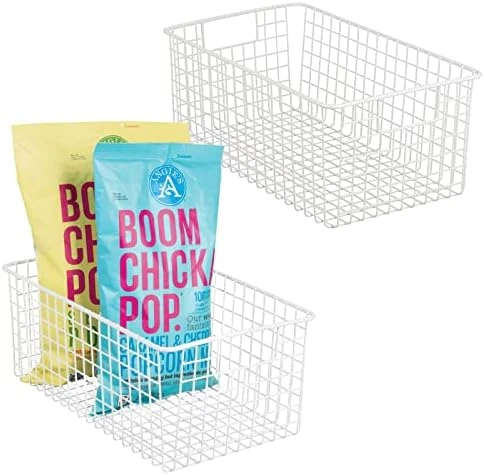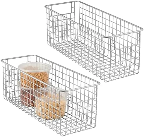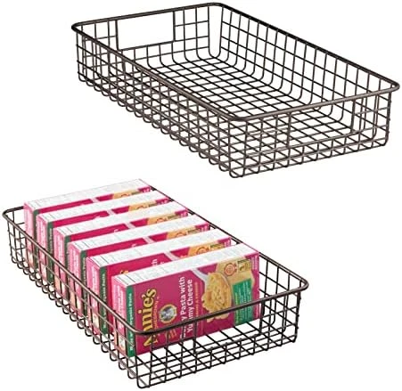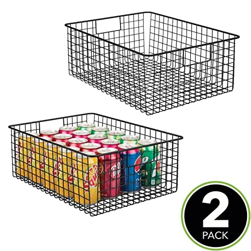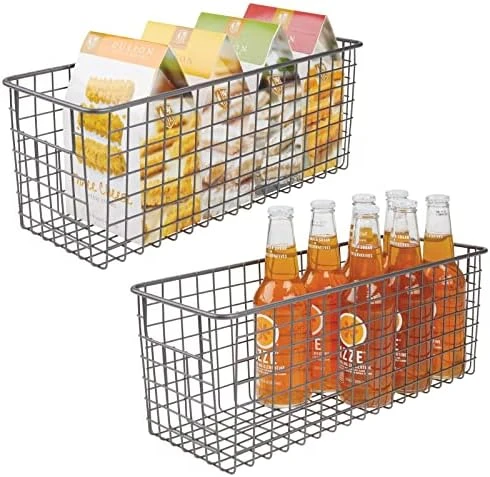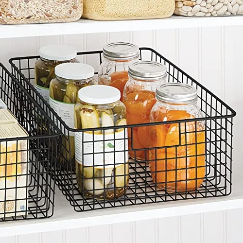 - PORTABLE: Easy-grip built-in side handles make it convenient to pull this tote off the shelf, out of cabinets or wherever you store them; The integrated handles make these perfect for upper shelves, you can use the handles to pull them down; Use multiple bins together to create a customized organization system that works for you; Keep items organized and easy to find with this vintage-inspired modern wire bins
