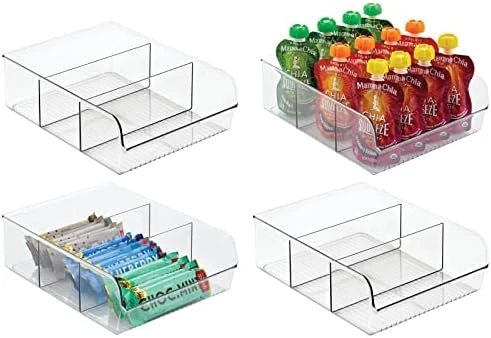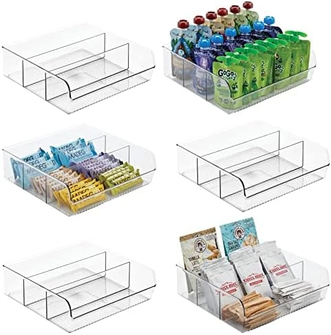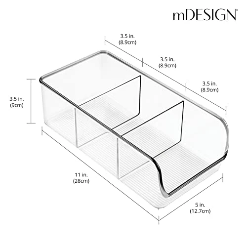 MDesign Plastic Food Storage Bin Organizer With 3 Compartments For Kitchen Cabinet, Pantry, Shelf, Drawer, Fridge, Freezer Organization – Holds Snack Bars – Ligne Collection – Clear