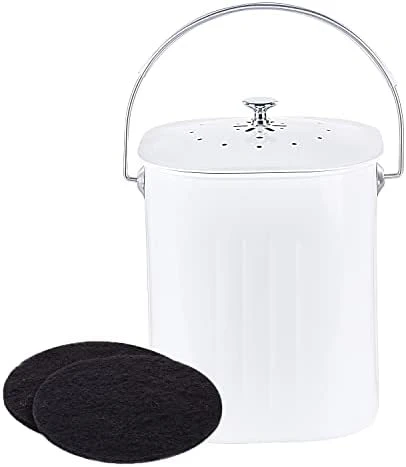 - Odor Free: Designed with replaced charcoal filter and lid blocks odor naturally which allows you to place this compost bucket on your countertop in weeks until it is full.