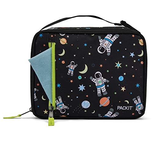 - PackIt’s Classic Freezable Lunch Box measures 8.25 inches tall standing upright, 10 inches wide from side to side and 4.25 inches front to back/deep. Easy to clean: interior wipes clean, spot clean exterior