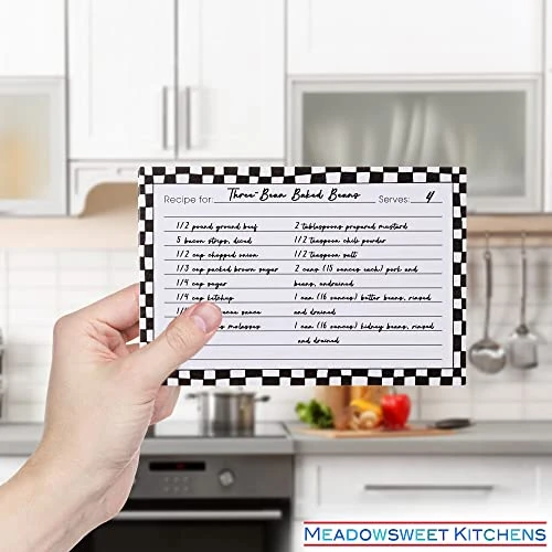 - IDEAL SIZE: Our collection of recipe cards is the perfect fit for your recipe book binder or recipe tin. The cardstock is thick and the ink from your pen will not soak through. Our double sided recipe cards are great for long recipes.