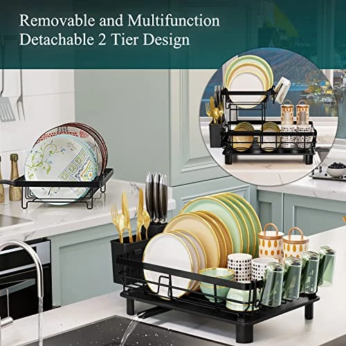 - NO MORE RUST: This 2-Tier Dish Drainer is made of high quality metal to prevent rust and last longer. This is a small 16.9 x 12.9 x 12.9 inch drainer that is perfect for home use.