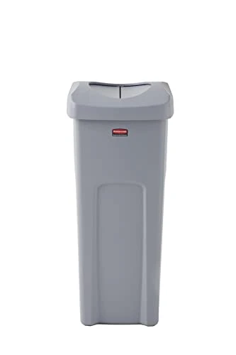 - The swing-top lid provides hands-free waste disposal and keeps waste concealed from view
