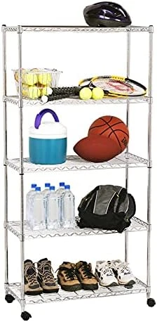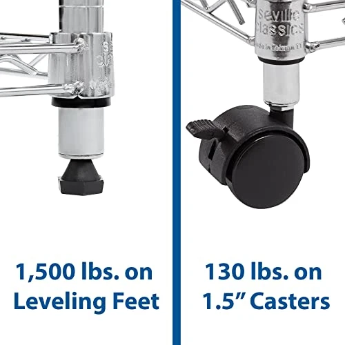 - WEIGHT CAPACTIY – Each shelf holds up to 300 lbs. on leveling feet (1,500 lbs. total). On wheels system holds 130 lbs. total.