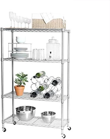 - WHEELS + LEVELING FEET – Shelving system includes 2” wheels (2-locking) and 4 adjustable leveling feet