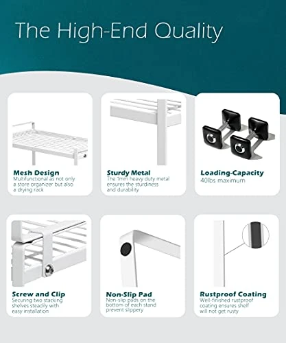 - SPECIFICATION: Individual one shelf: 13 * 8.3 * 7.3 inches. Stacked two shelves: 13 * 8.3 * 14.6 inches. Loading Capacity: 40lbs. Manual and assembly parts includes in the package. You’re welcome to contact us if you have any problems with our products.