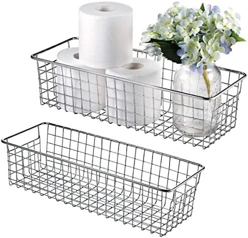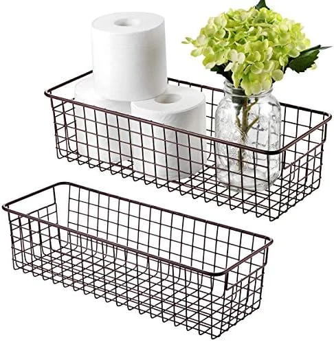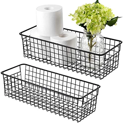 - ✅PORTABLE – Built-in easy carry handles make it convenient to pull this tote off the shelf, out of cabinets or wherever you store them; The integrated handles make these perfect for upper shelves, you can use the handles to pull them down; Use multiple bins together to create a customized organization system that works for you; Keep items organized and easy to find with this vintage-inspired modern wire bins