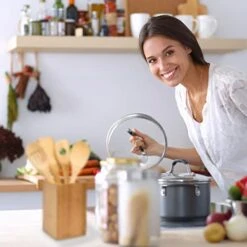 Relaxdays Bamboo Cooking Set With Spoon, Ladle With Hole, Spatula Und Container, Brown