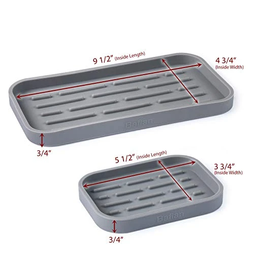 - 2 SIZES: Small tray is perfect to keep your sponge or soap bar. Use large size for liquid soap, dish brushes, scrubbers, or dish rag