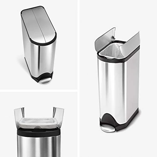 - SILENT CLOSE LID – simplehuman’s patented lid shox technology controls the motion of the lid for a slow, silent close.