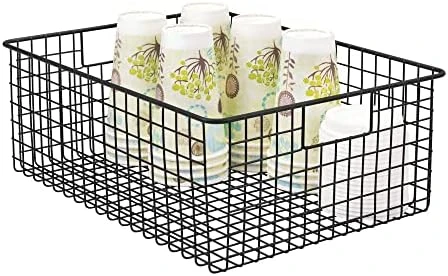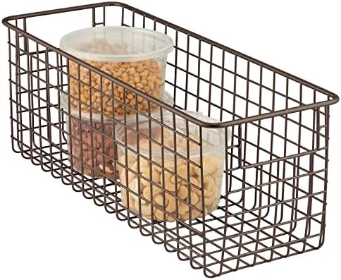- PORTABLE: Easy-grip built-in side handles make it convenient to pull this tote off the shelf, out of cabinets or wherever you store them; The integrated handles make these perfect for upper shelves, you can use the handles to pull them down; Use multiple bins together to create a customized organization system that works for you; Keep items organized and easy to find with this vintage-inspired modern wire bins