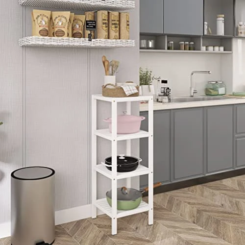 - ★ HIGHLY VERSATILE & PRACTICAL: This nice utility storage shelf is great for organizing towels, toiletries, bags, box, baskets, or small appliances, perfect use it as a bathroom rack, balcony flower plant stand, kitchen rack, pantry shelf, bookshelf, garage shelving and more