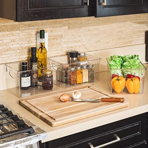 - Clear View for Easy Access – Clear plastic storage bins allow you to quickly see what’s stored inside – Save time and hassle searching through a cluttered refrigerator, freezer, or pantry cabinet – Easily group food items and supplies by use, size, or type.