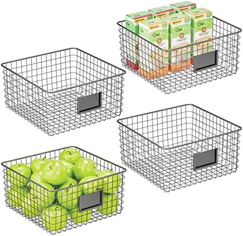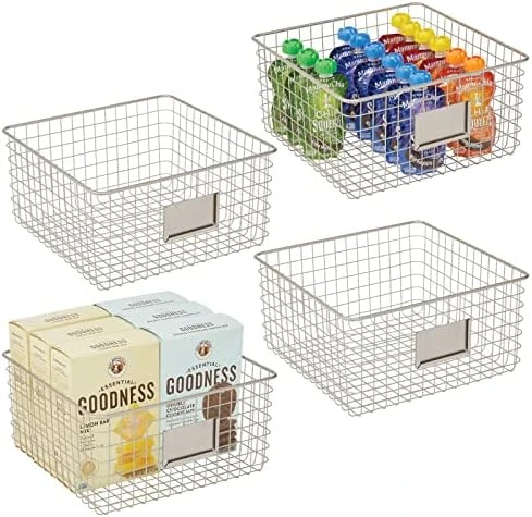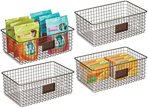 - FUNCTIONAL & VERSATILE: Organize all of your kitchen essentials; Great for dry goods and other kitchen items such as: towels, candles, small appliances and kitchen tools; These also work in the refrigerator or freezer; Classic open wire design offers roomy and easy storage for any room in your home; Use multiple bins side by side for larger spaces or use them individually; Try these in closets, bedrooms, bathrooms, laundry rooms, craft rooms, mudrooms, offices, playrooms, and garages