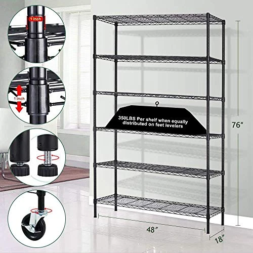 Be the first to review “Storage Metal Shelf Wire Shelving Unit With Wheels 82″x48″x18″ Sturdy Steel Heavy Duty 6 Tier Layer Rack With Casters For Restaurant Garage Pantry Kitchen Garage Rack Black” Cancel reply