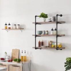 Homissue 31.5-Inch Industrial Pipe Shelf, 3-Shelf Metal Bookcases Furniture, Retro Brown