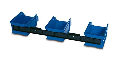- Materials. Polypropylene storage bins and polystyrene hanging rail.