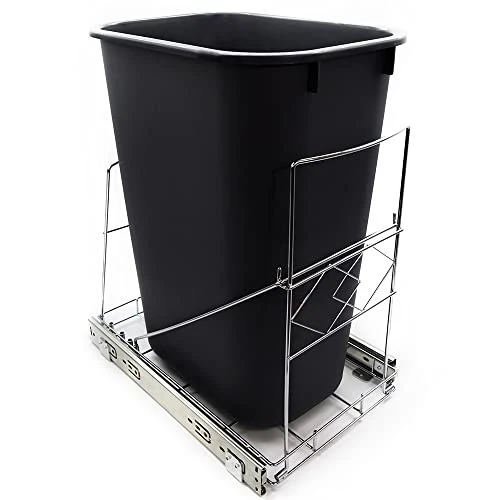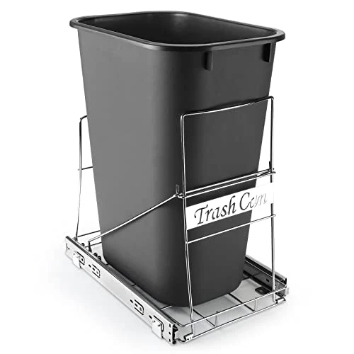 - ✔ThyLove ADJUSTABLE SHELF TO FIT YOUR TRASH BIN: The trash can rack is adjustable, complete cabinet trash can pull out kit, can fit your smallest trash can. Compatible with any size trash can.
