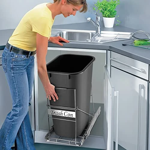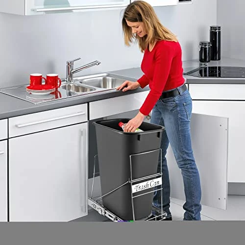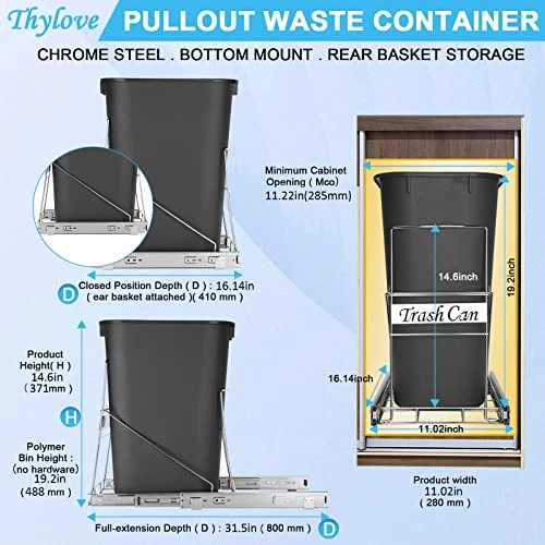 - ✔ThyLove EASY INSTALLATION: No assembly required. The only thing you need to do is fix it with screws and put it in the trash. Under sink trash cans and eating areas in office areas also fit our pull out trash can set, Note: Please measure your cabinet size to make sure the product can fit in it. Please try to leave as much installation space as possible.