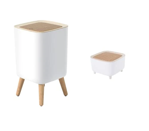 - ✅【DURABLE WOOD GRAIN DESIGN】: This Nordic-inspired trash can is not only beautifully designed but also functional. Its wood grain design legs are intentionally incorporated to promote durability – they are very sturdy, completely waterproof and will never corrode. You may put it inside your bathroom without worry! Furthermore, you have the option to install the bin with or without the wooden legs as they are entirely removable and separately packaged in your order.