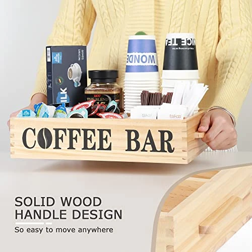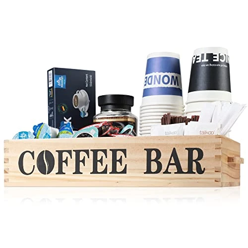 - ćSurprising Gift Ideać Coffee bar organizer has a beautiful appearance and high quality, it is definitely a great gift for coffee lovers. Can bring a rustic and elegant atmosphere to any home.