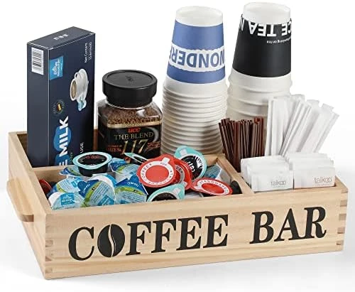 - ćMulti-Slot Mass Storageć This coffee organizer has 4 compartments for storing a variety of coffee condiments. The ability to store everything neatly in the box is the best choice for saving space and solving storage problems.