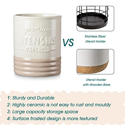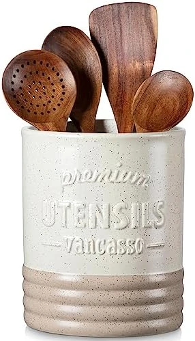 - 【Excellent Holiday Gift】- The vancasso large cream-colored kitchen utensil holder is a great housewarming and hostess gift. A stylish delicate design is perfect for the kitchen interior, as well as enriching your cooking experience. Great gift for Christmas, Thanksgiving, Mother’s Day, etc.