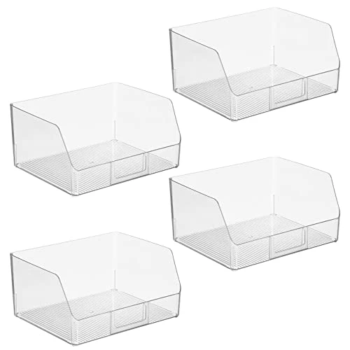 - EASY IDENTIFICATION: Bins feature an integrated, built-in label holder to easily identify contents; A white card is included with each bin – just write on the card and insert into the front; The open fronts provide easy access to stored items; Use multiple bins together to create a custom organization system that works for you; Keep items organized and easy to find; Try these in closets, bedrooms, bathrooms, laundry rooms, craft rooms, mudrooms, offices, play rooms, garages and more