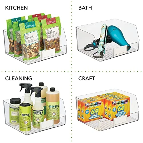 - FUNCTIONAL & VERSATILE: The perfect depth for cabinet and pantry shelves; These versatile bins can be used in any room of the home – use them in craft rooms, laundry/utility rooms, bedrooms, bathrooms, offices, garages, toy rooms, and playrooms; mDESIGN TIP: Create a storage spot in the mudroom or entryway for outdoor needs like sunscreen, bug spray and bubbles; Versatile, light weight and easy to transport, these are great in apartments, condos, dorm rooms, RVs and campers
