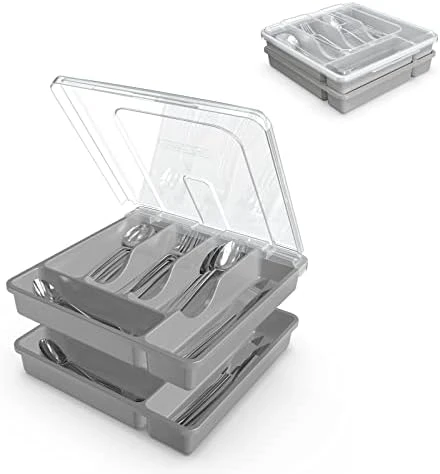 - 5 Generous Compartments: Multi-compartment silverware tray keeps items organized and ready to use; Sort place setting pieces, knives, forks, spoons and other kitchen gadgets.